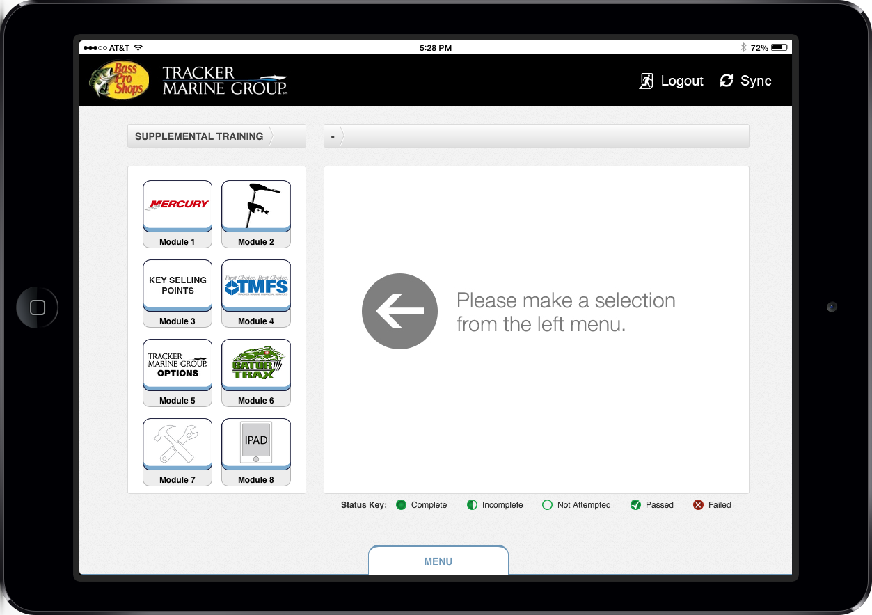 Bass Pro’s corporate marketing team sought to increase certification levels for sales teams supporting the company’s most profitable offerings – sporting and recreational watercraft badged under various Tracker Marine brands – using mobile and online technologies. The engaging solution set improved overall learning practices and also enhanced the customer selling experience.